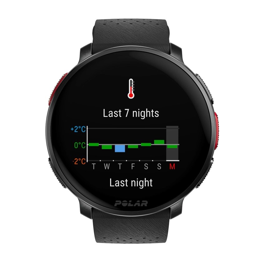ステージは整いました。1度の充電で何日間も使用可能なバッテリー、血中酸素レベル、そして皮膚温センサーも備わったVantage V3スポーツスマートウォッチは、最高のパフォーマンスを提供します。