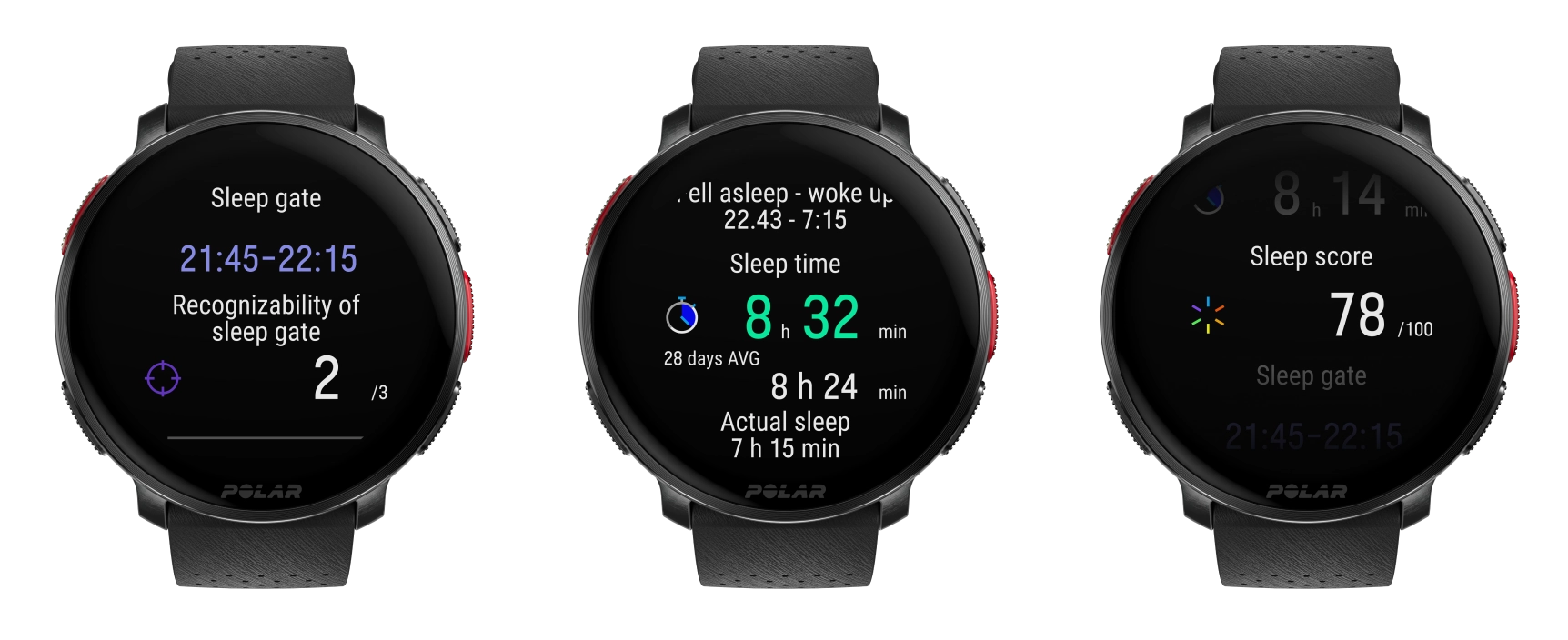 ※ポラールの搭載されている【睡眠に関するすべての計測機能、夜間皮膚温計測、血中酸素計測】に関しては、フィットネス・ヘルスケアの範囲で利用することを目的とするもので、医療目的ではご利用になれません。